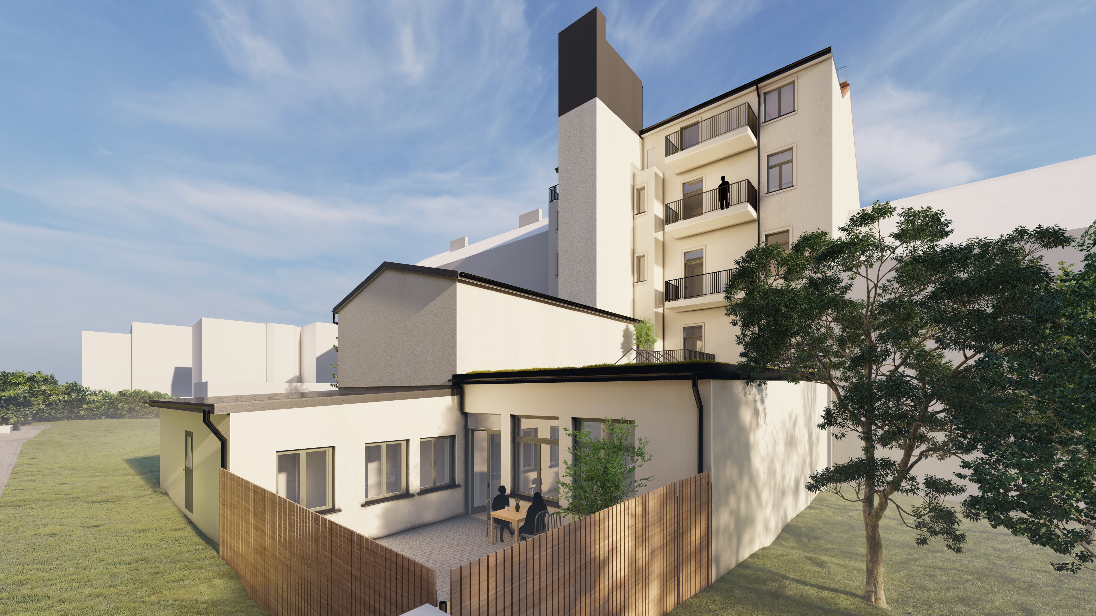 Zásadní změny proběhly ve vnitrobloku, kde byly doplněny balkony a upraveny dispozice tak, aby vzniklo kvalitní bydlení orientované do klidového prostoru dvora. Uliční fasáda byla zachována a obnovena, čímž byl respektován charakter historické zástavby.
